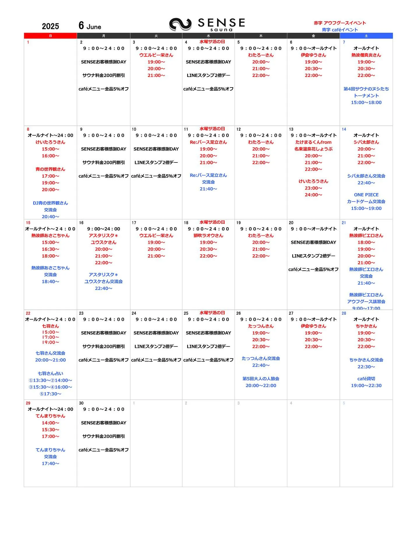 🌿6月のSENSE saunaイベントカレンダー🌿