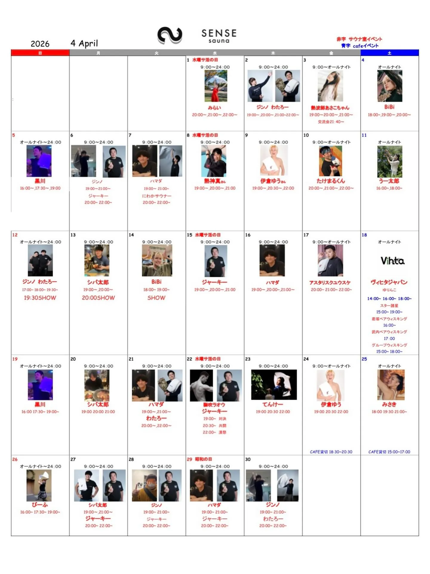🔥【SENSE sauna 4月イベントカレンダー】🔥